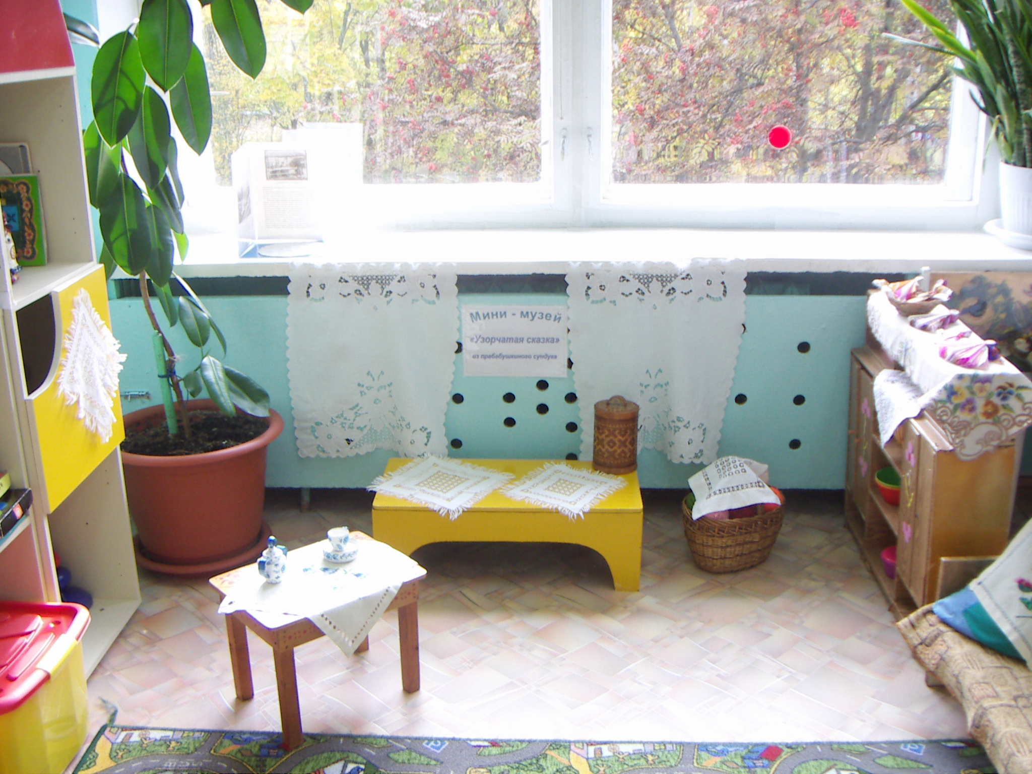 В группе "Пчелка" МБДОУ №188 тоже были интересные находки в организации предметно-развивающей среды. Это мини-музей "Узорчатая сказка" из прабабушкиного сундука", в котором дети могли познакомиться с историей возникновения Ивановской вышивки, с работами ивановских мастериц прошлого века. Вместе с родителями дети приготовили прекрасные поделки в уголок "Знакомство с родным краем".